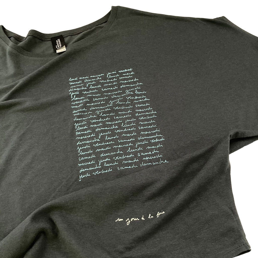 This shirt is made in the Democrat State of New York , USA, by a fair, safe, eco-friendly and non-discriminatory company, and silkscreened by Yasmine Louis in her Toronto studio